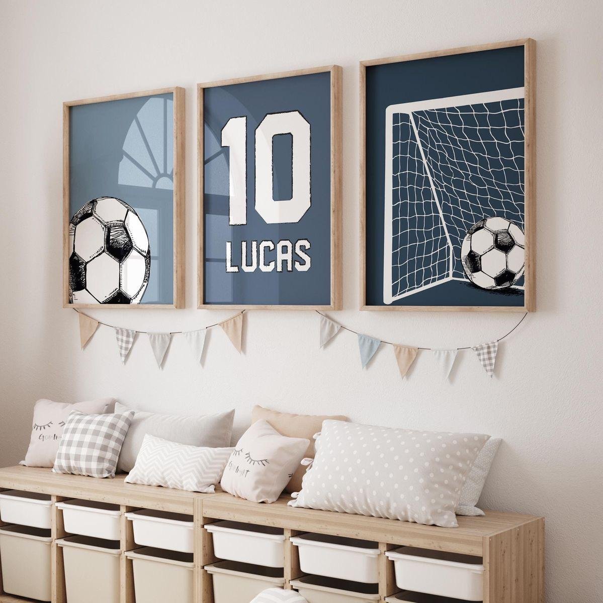 3 Framed Kids’ Football Wall Posters – Personalized ‘Lucas’ Number 10
