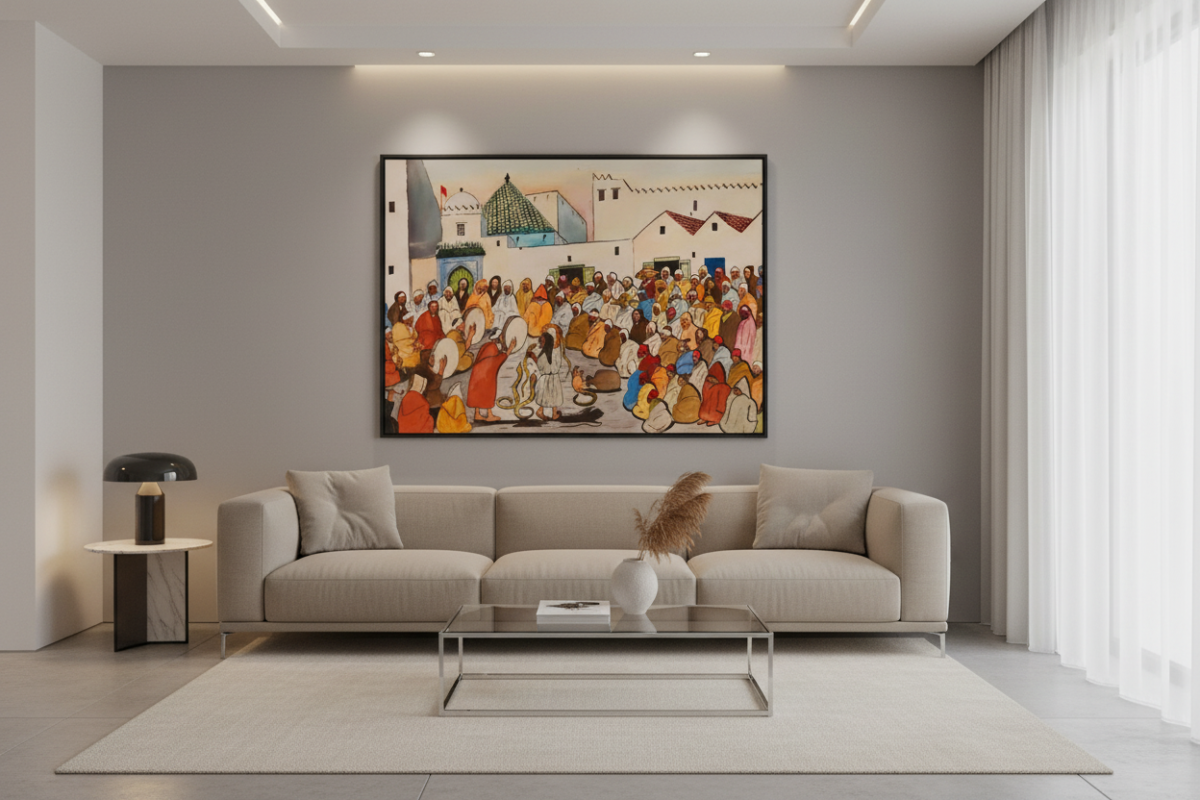 La technique artistique du tableau sur velour se distinguent par un support unique qui utilise la texture douce et profonde du tissu pour créer un contraste saisissant, offrant ainsi une richesse visuelle, une vivacité des couleurs et un effet dramatique à l’œuvre.
