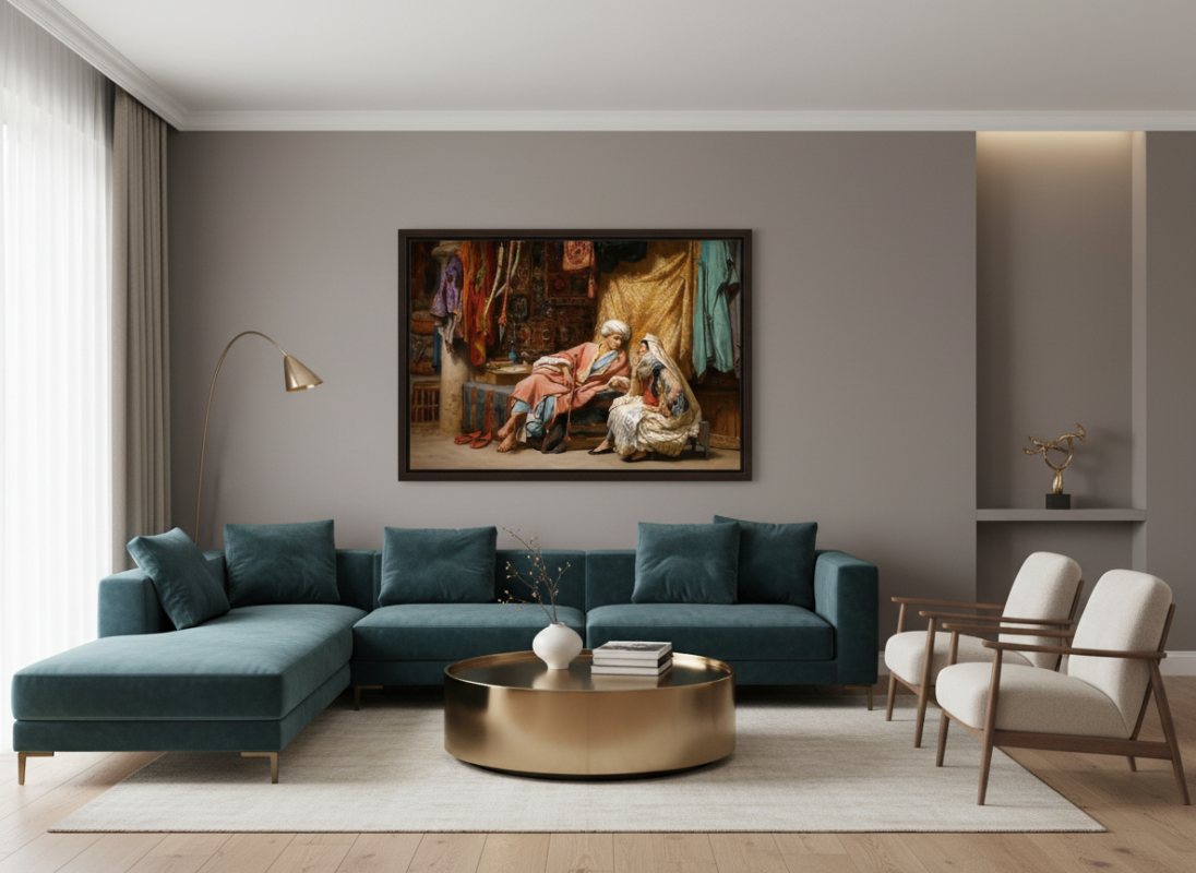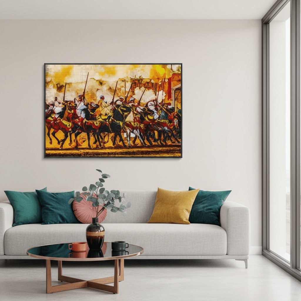 La technique artistique du tableau sur velour se distinguent par un support unique qui utilise la texture douce et profonde du tissu pour créer un contraste saisissant, offrant ainsi une richesse visuelle, une vivacité des couleurs et un effet dramatique à l’œuvre.