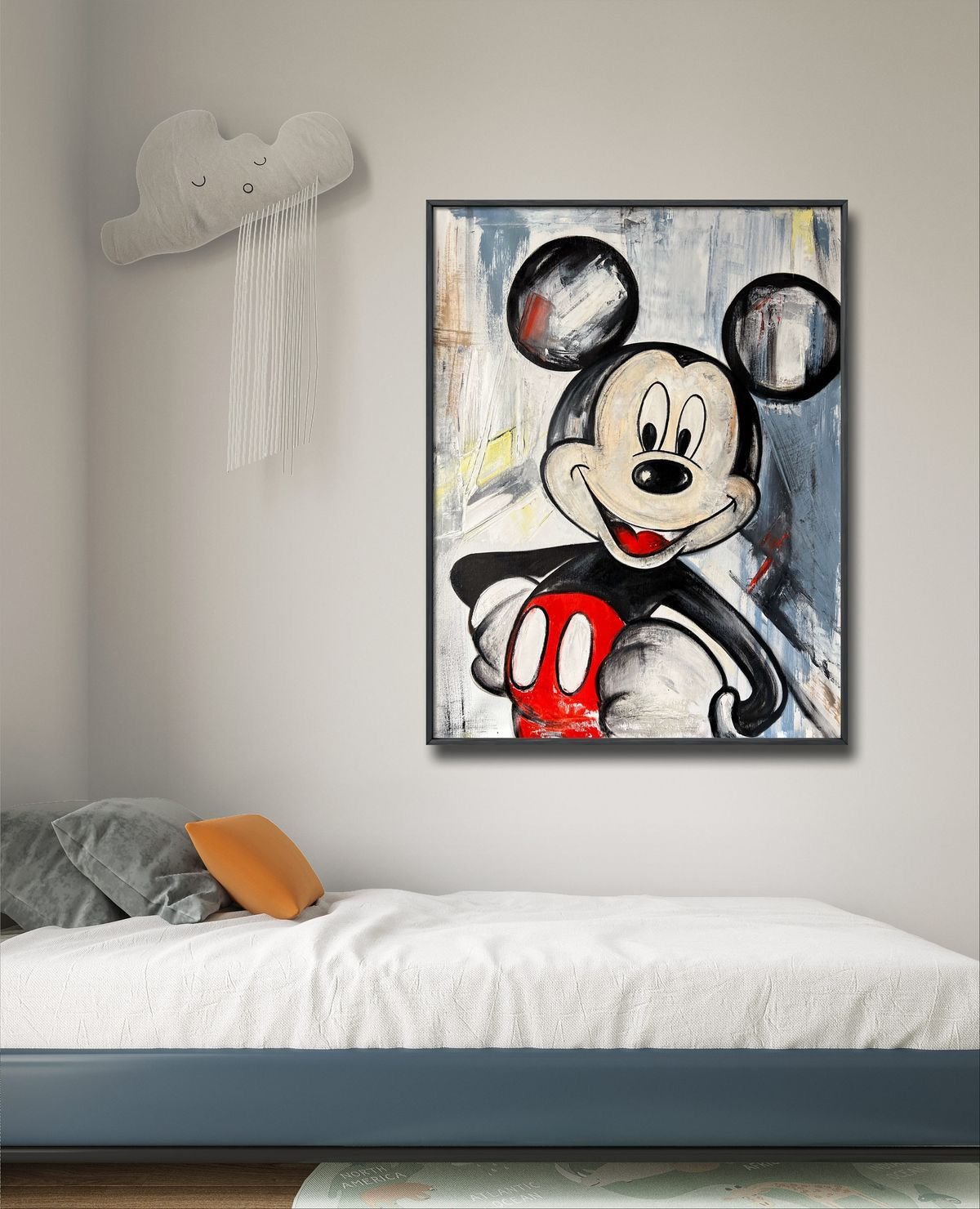 Modern Abstract Mickey Mouse Canvas Painting – Original Style by Nataliya Rozhdestvenskaya