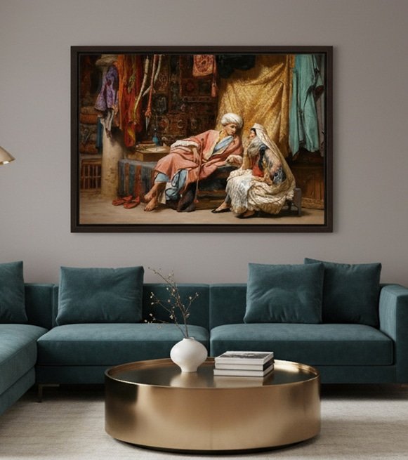 La technique artistique du tableau sur velour se distinguent par un support unique qui utilise la texture douce et profonde du tissu pour créer un contraste saisissant, offrant ainsi une richesse visuelle, une vivacité des couleurs et un effet dramatique à l’œuvre.